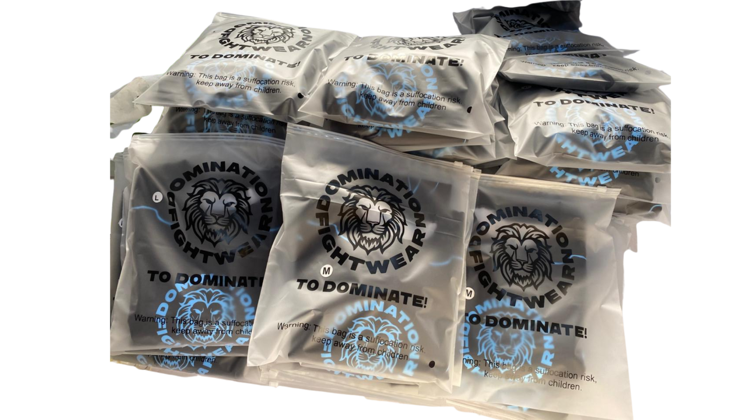 -Logo: Domination Fightwear op de borst en achter in de nek